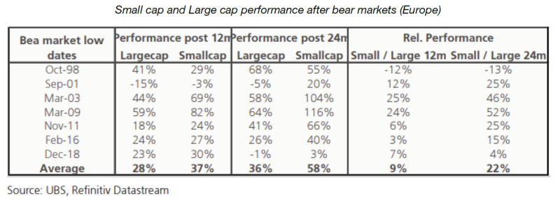 Cela a aussi été le cas lors de la crise de la Covid 19, avec un rebond de 63% entre les points bas de mars 2020 et fin 2020 pour le Stoxx Small 200 contre +45% pour le Stoxx 600.