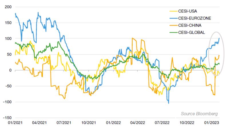 However, we can see that the macroeconomic figures in H2 2022 contained positive surprises in Europe and China (rise in the CESI (Citi Economic Surprise) indicator, see chart below) and that inflationary tensions appeared to be easing.